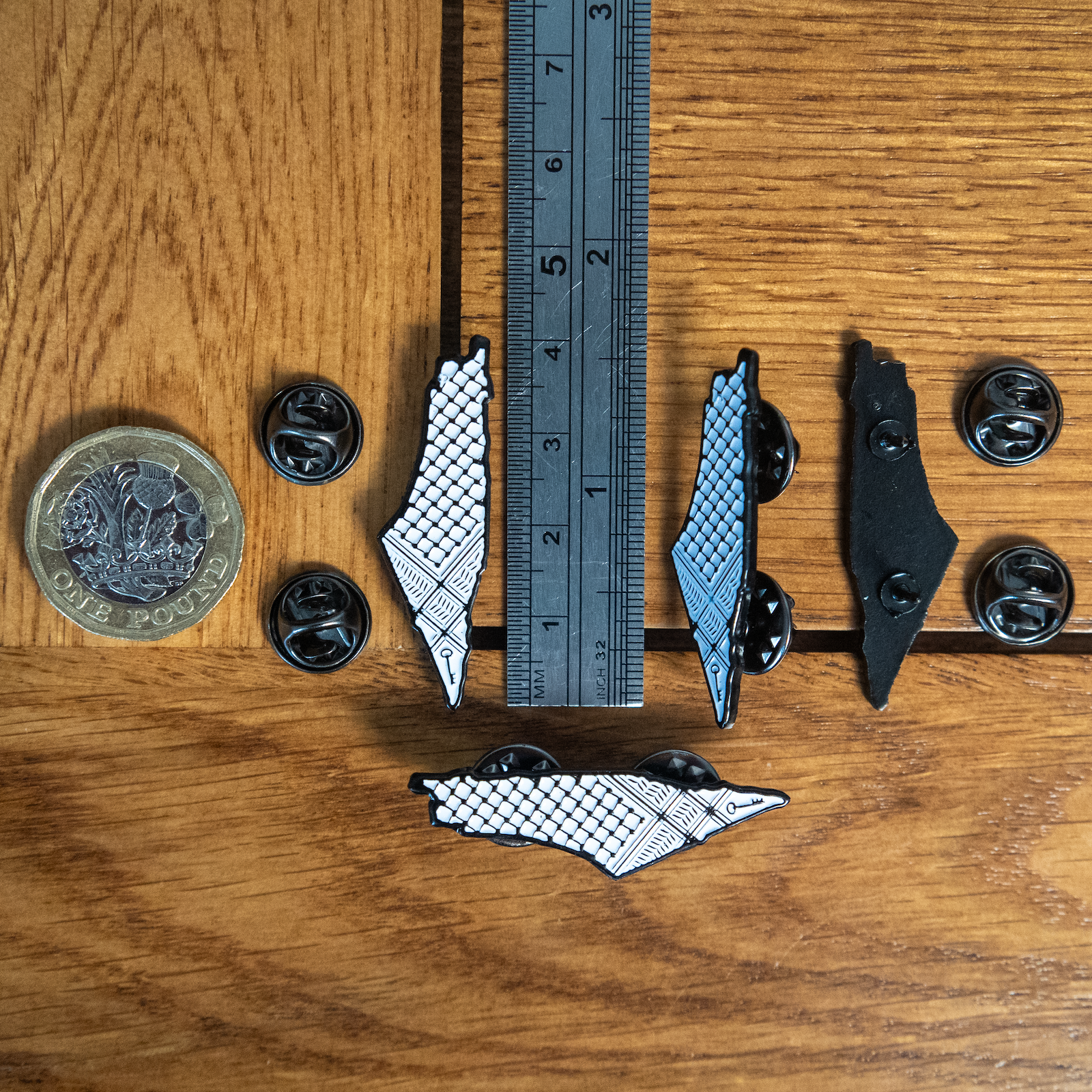 All profits generated (£1.50 per pin) will be donated towards aid efforts in Palestine.